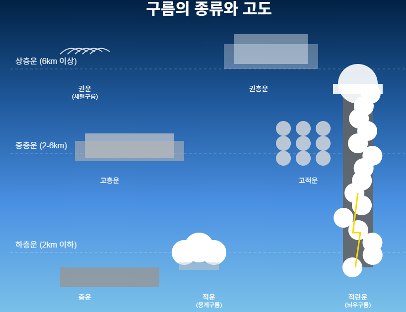 하늘이 들려주는 이야기하늘을 올려다보면 매일 다른 모습의 구름을 만날 수 있습니다. 구름은 단순히 아름다운 풍경을 만드는 것이 아니라, 앞으로 다가올 날씨에 대한 중요한 정보를 담고 있습니다. 옛날 사람들은 과학 장비 없이도 구름의 모양과 움직임을 관찰하여 날씨를 예측했고, 현대 기상학에서도 구름은 여전히 날씨 예보의 핵심 요소입니다. 구름은 고도에 따라, 모양에 따라, 그리고 날씨 변화와의 관계에 따라 여러 종류로 분류됩니다. 각각의 구름은 특정한 기상 조건에서 만들어지며, 그 형태를 보면 대기의 상태와 앞으로의 날씨 변화를 짐작할 수 있습니다. 이 글에서는 구름이 어떻게 만들어지는지, 주요 구름의 종류와 특징은 무엇인지, 그리고 구름을 보고 날씨를 예측하는 방법에 대해 자세히 알아보겠습니다.